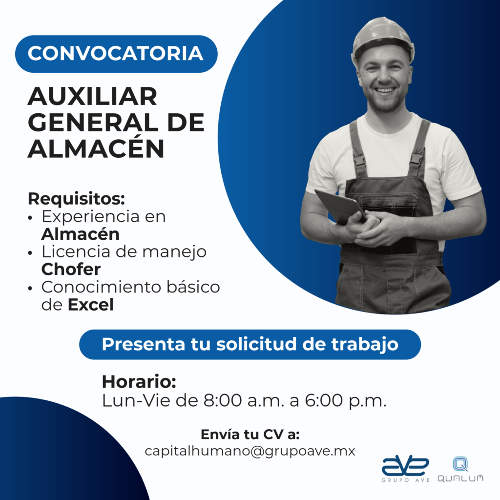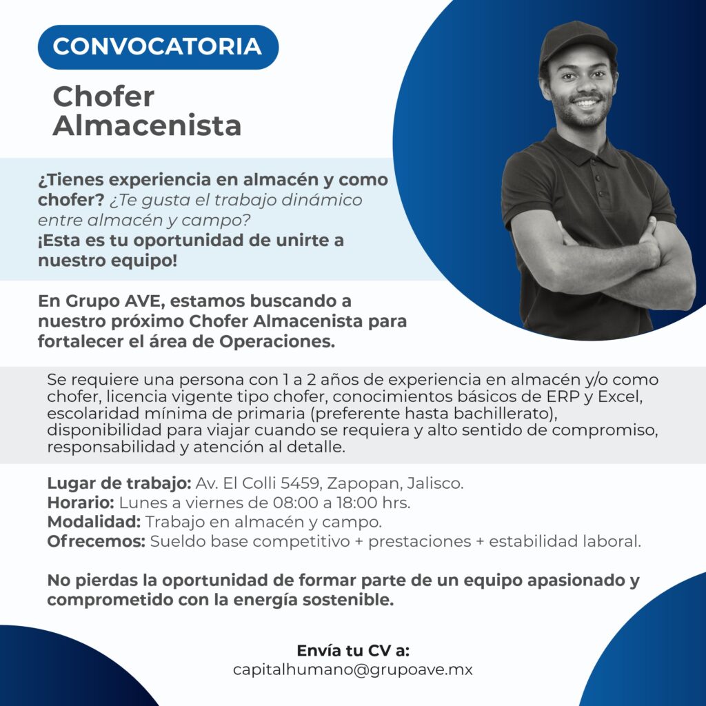 📩 Envía tu CV a: capitalhumano@grupoave.mx